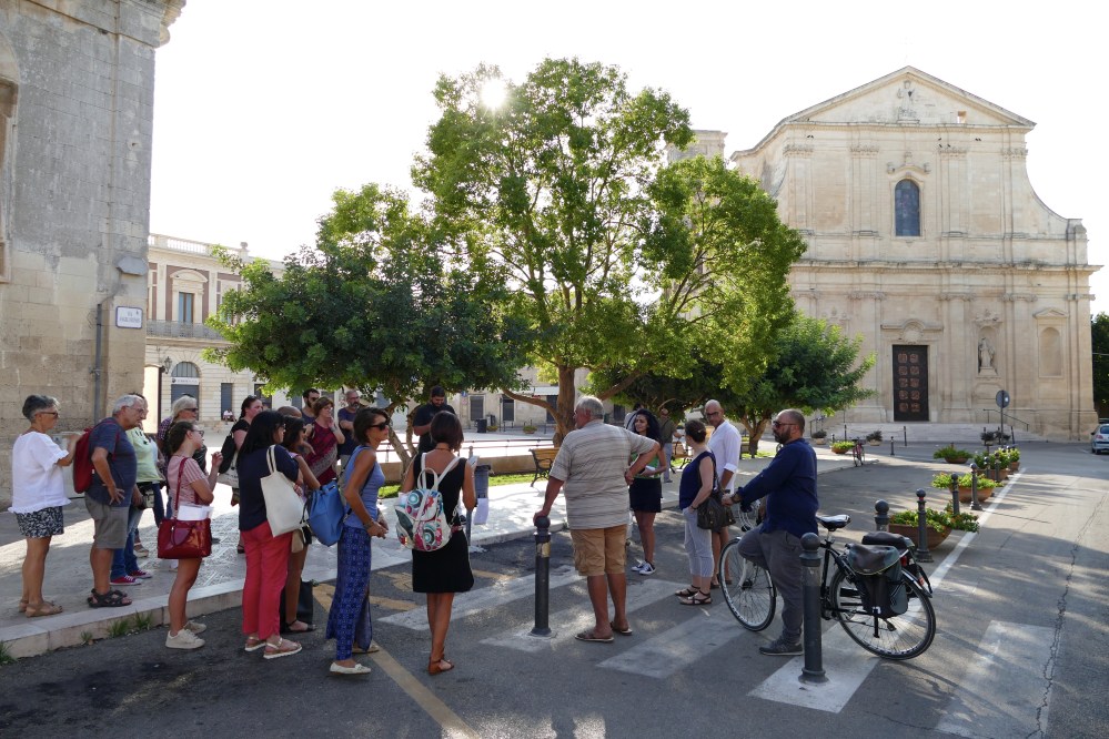 Abbiamo percorso le vie del centro storico di San Cesario di Lecce, soffermandoci su alcuni suoi luoghi notevoli, quelli che nella ricerca con i testimoni della comunità sono emersi come particolarmente carichi di investimento simbolico e sociale. Ci siamo fatti guidare proprio dalle narrazioni raccolte durante la ricerca sul campo da alcuni membri della comunità di San Cesario e alcuni di loro ci accompagnano anche ora e ci ripropongono le loro narrazioni. E poi la voce di Angela Caputo Lezzi e Francesco Reggio, che ci condividono il loro sapere storico-artistico, arricchisce lo spaccato culturale di questa comunità di cui ci costruiamo una rappresentazione strada facendo, è proprio il caso di dire.