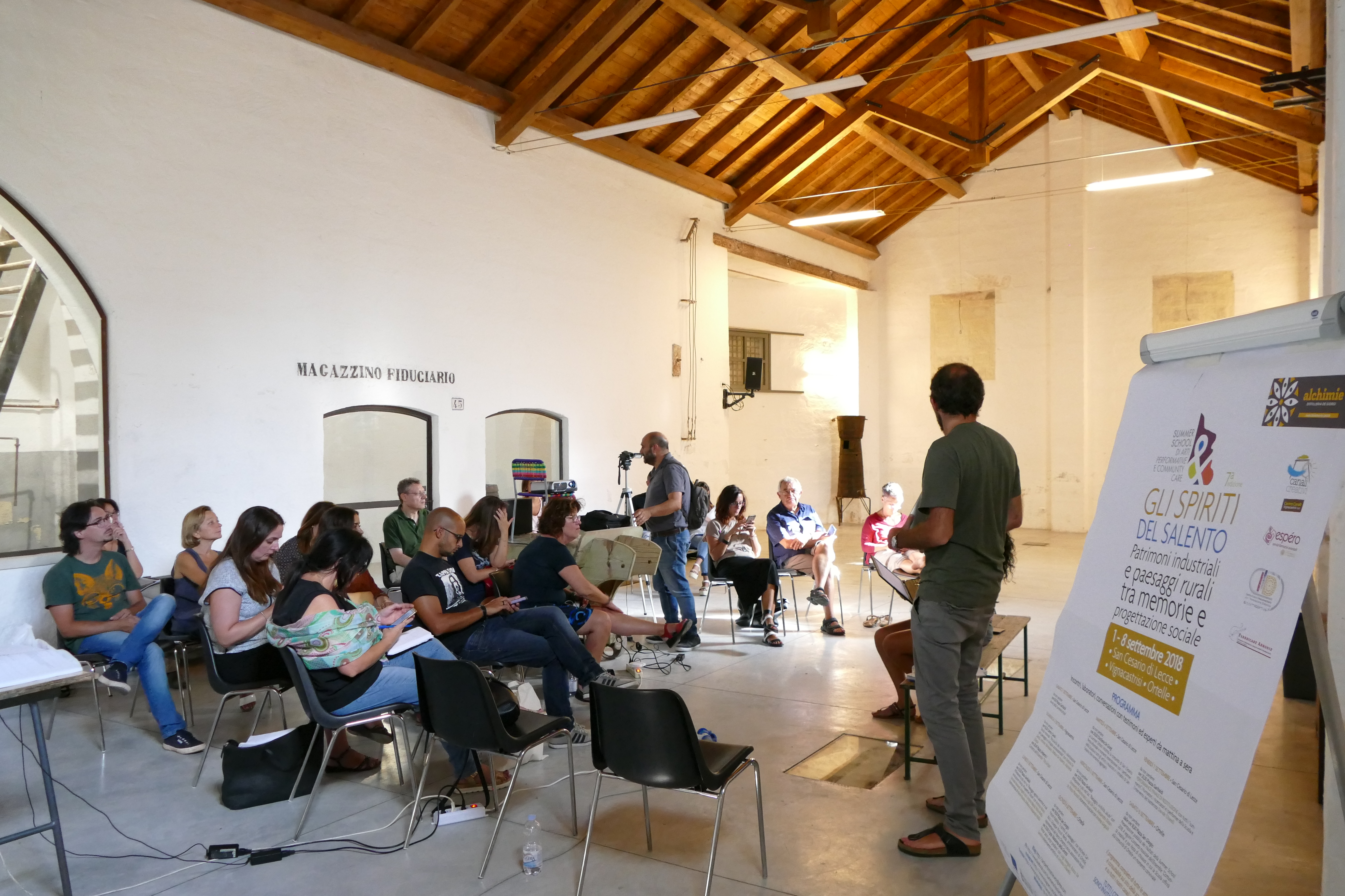 Il Laboratorio di Digital Storytelling ha avuto, nell’edizione 2018, ha un ruolo essenziale nella scrittura della performance di restituzione alla comunità. All’interno del laboratorio sono state previste attività di scrittura drammaturgica nonchè di elaborazione e composizione di materiali audiovisivi digitali, realizzati dai partecipanti sotto la guida di Pierpaolo Battocchio e Alessandro Bollino che sono stati poi incastonati nella narrazione performativa finale di restituzione.