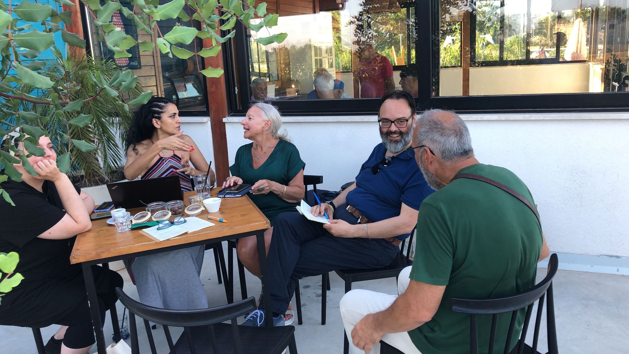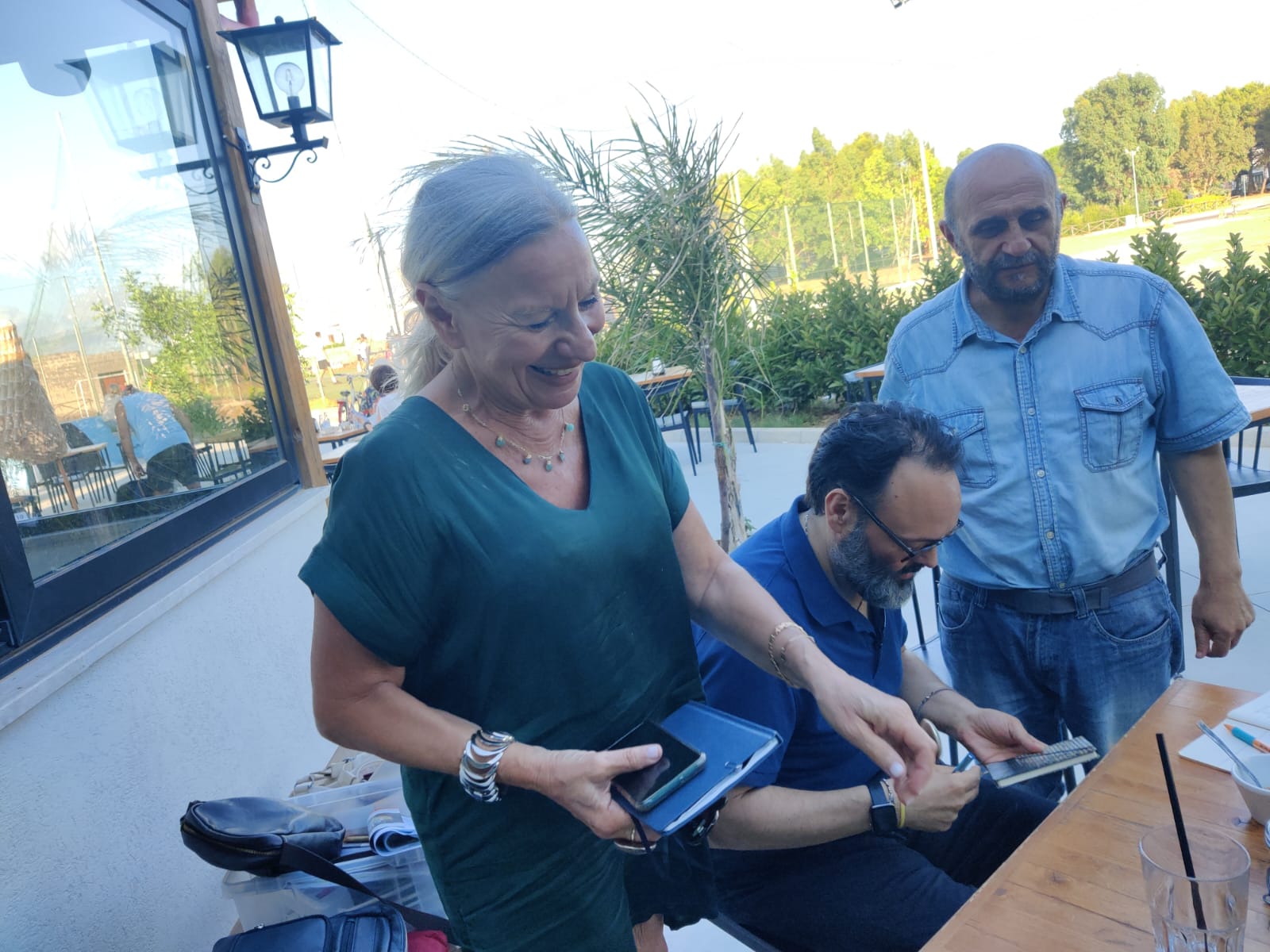 Ci spostiamo al bar. Lì incontriamo Antonio Chiarello, che viene armato di macchina fotografica – si è proposto, ormai da diversi anni – di documentare qualsiasi evento riguardi la comunità di Ortelle: ha una preziosissima banca dati di immagini. Una loro oculata selezione dovrebbe far parte dell’Ecomuseo di cui andiamo ragionando. Ne avremo occasione per parlarne. Antonio ci chiede se abbiamo notato i murales con cui sta intervenendo a connotare artisticamente Largo San Vito. Antonio Chiarello abita lì nei pressi del parco, ha lo studio che guarda sulla piccola pineta che articola con la sua presenza l’enorme spazio di “San Vito”. Ha dipinto, durante il Covid, un murales commemorativo della strage di Capaci e ora – con l’ausilio di alcuni ragazzi coinvolti nel progetto – ha rappresentato un certo numero di eroi positivi dello sport. A suo modo, Antonio, è l’aedo visivo di Ortelle. Il suo studio, la sua persona saranno l’uno e l’altra, elementi dell’Ecomuseo. Accanto a casa sua abita un apicoltore, Salvatore, innamorato delle api, conoscitore eccezionale del loro mondo, produttore di un miele dagli straordinari profumi. In una delle passate edizioni della Summer School, lo abbiamo intervistato, andandolo a trovare mentre interagiva con le api, senza bardature di sorta, non necessarie, a suo dire, se sai entrare in dialogo con le api, animali molto intelligenti.