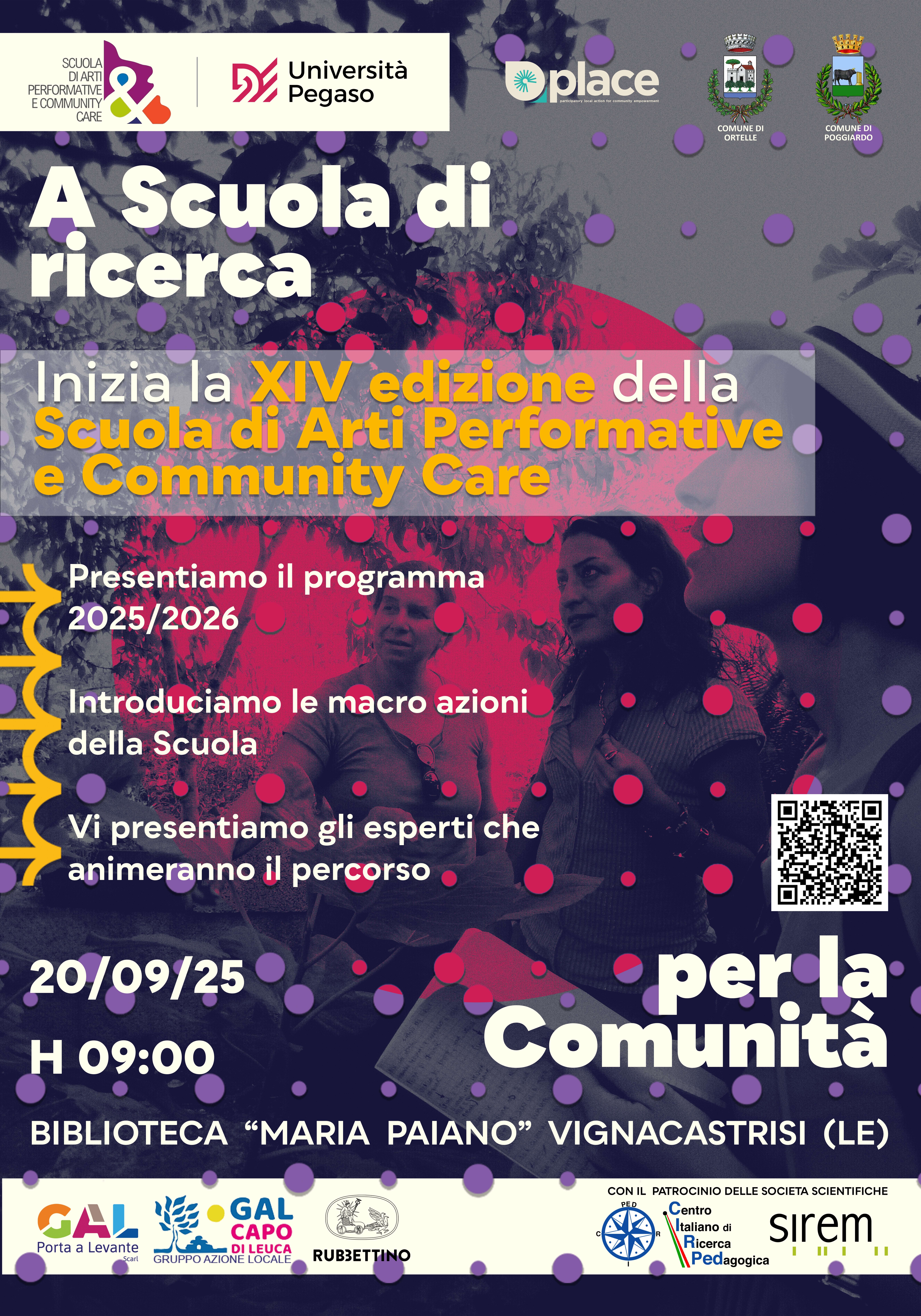 Sino ad ora la Scuola di Arti Performative e Community Care ha eletto il suo laboratorio di ricerca, azione e sperimentazione nel territorio del Salento Sud-Orientale, nel quale – proprio valorizzando i risultati e gli artefatti prodotti nell’arco di un decennio – è stato avviato dal 2023 un processo (volutamente lento e progressivo) finalizzato alla costituzione dell’Ecomuseo delle Comunità del Salento Sud-orientale.